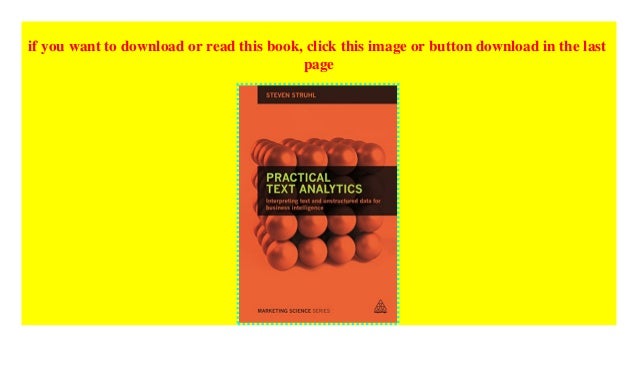 - Practical Text Analytics Interpreting Text And Unstructured Data For Business Intelligence Marketing Science Struhl Steven 9780749474010 Amazon Com Books : Consultant And Researcher Steven Struhl Presents The Process Of Text Analysis In Ways That Will Help Marketers Clarify And Organize The Confusing Array Of Methods, Frame The Right Questions, And Apply The Results Successfully To Find Meaning In Any Unstructured Data And Develop Effective New Marketing.