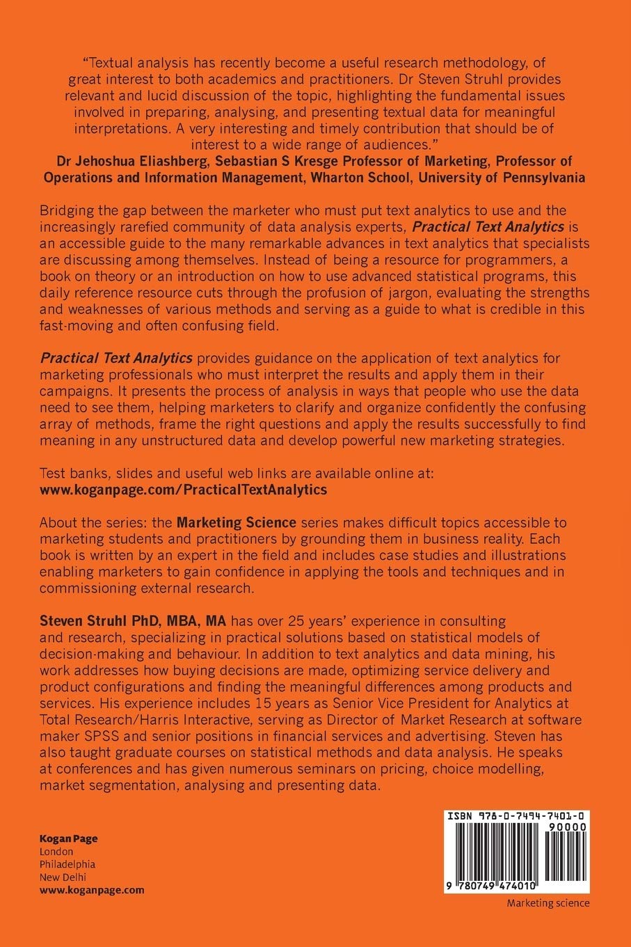- Practical Text Analytics Interpreting Text And Unstructured Data For Business Intelligence Marketing Science Struhl Steven 9780749474010 Amazon Com Books . Consultant And Researcher Steven Struhl Presents The Process Of Text Analysis In Ways That Will Help Marketers Clarify And Organize The Confusing Array Of Methods, Frame The Right Questions, And Apply The Results Successfully To Find Meaning In Any Unstructured Data And Develop Effective New Marketing.
